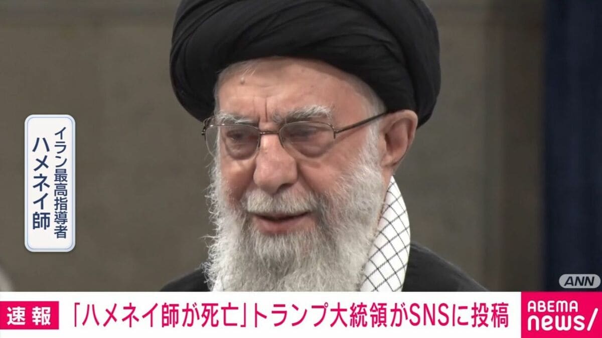 イランの最高指導者ハメネイ師死亡 トランプ大統領がSNSに投稿 2026年03月01日 カテゴリ:戦争 (出典 ABEMA TIMES) (出典 テレ朝NEWS - テレビ朝日) (出典 【速報】イランの最高指導者ハメネイ師死亡 トランプ大統領がSNSに投稿★2 [夜のけいちゃん★])1 夜のけいちゃん ★ :2026/03/01(日) 08:01:26.18 ID:1gNfb8+e93/1(日) 6:45配信 TBS NEWS DIG Powered by JNN トランプ大統領は先ほど、SNSに、イランの最高指導者ハメネイ師が死亡したと投稿しました。 ソース https://news.yahoo.co.jp/articles/703527027541d738c5385b59870d0176735262e1 1がたった日時 2026/03/01(日) 06:54:42 前スレ 【速報】イランの最高指導者ハメネイ師死亡 トランプ大統領がSNSに投稿 https://asahi.5ch.net/test/read.cgi/newsplus/1772315682/ (出典 【速報】イランの最高指導者ハメネイ師死亡 トランプ大統領がSNSに投稿★2 [夜のけいちゃん★]) 【イランの最高指導者ハメネイ師死亡 トランプ大統領がSNSに投稿】の続きを読む