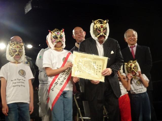 リングでは初代タイガーマスク応援少年少女隊から花束を受け取り、控室へは、自力で歩く姿も見せた。