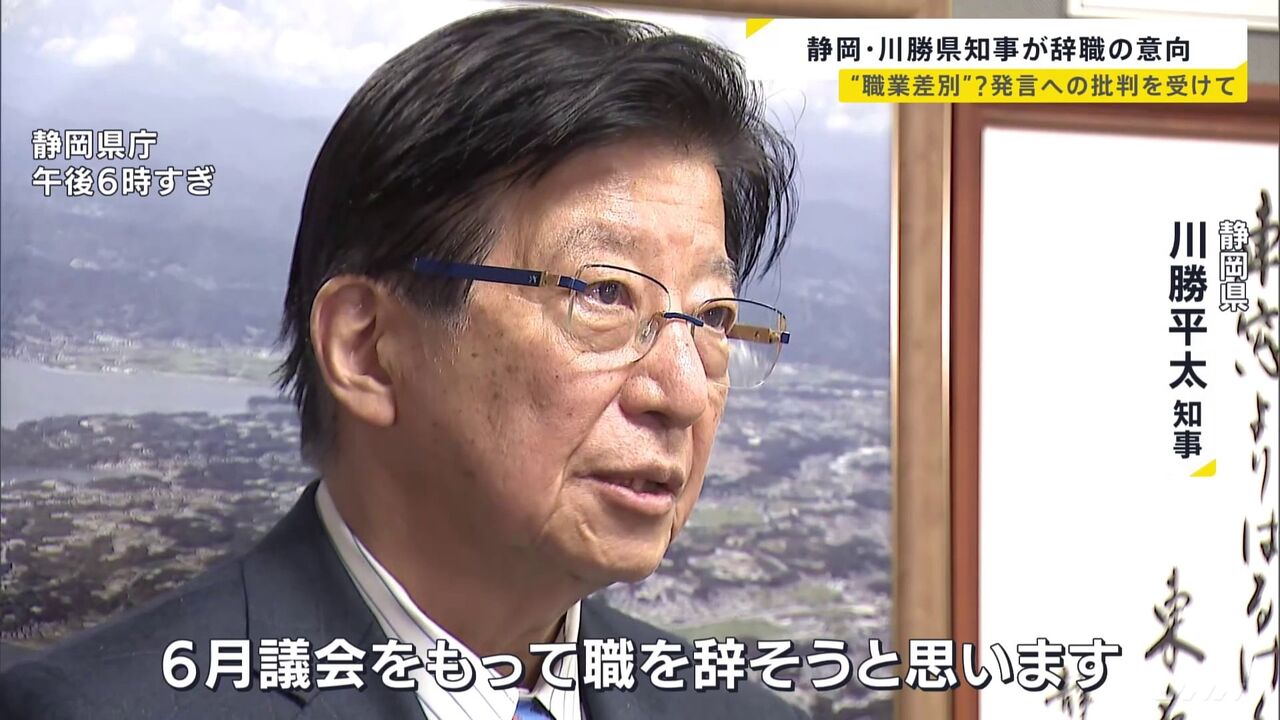 | | 静岡・川勝知事が辞職の意向表明 訓示で“職業差別”発言 (出典:FNNプライムオンライン(フジテレビ系)) |
