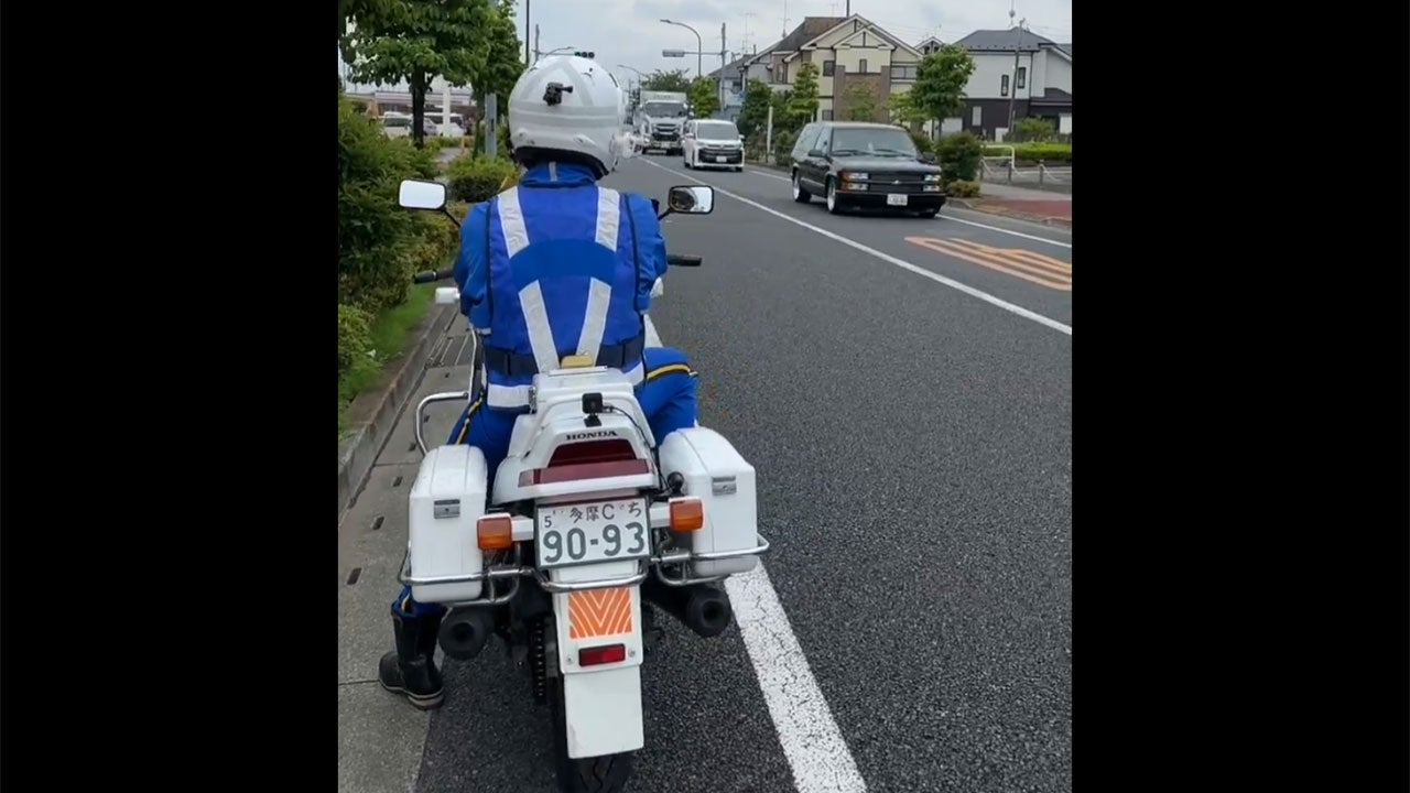 男性の格好は一見すると白バイ隊員に類似しており、動画内でも男性の影響なのか通行車両が車間距離を空けたり、スピードを落としたりする様子が撮影されています。