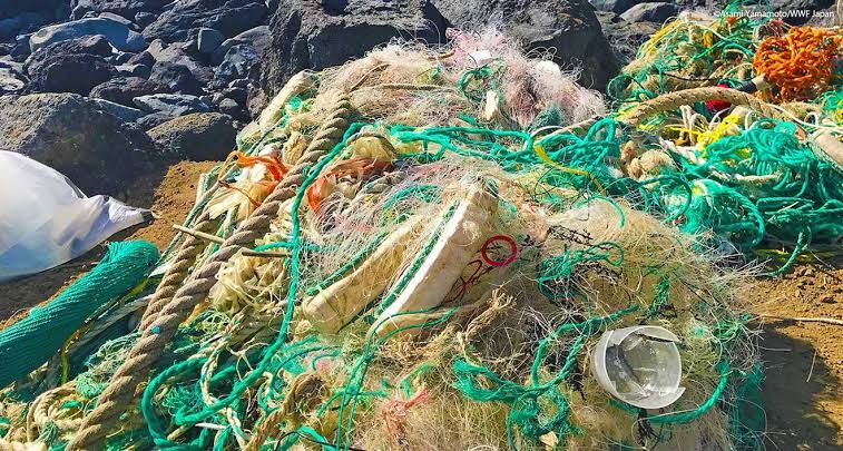 漁具の表面が劣化でポロポロ剥げ落ちる。これが海洋プラスチックの大部分