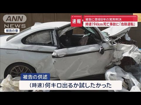 大分市の一般道で2021年、時速194キロで乗用車を運転し右折車と衝突、男性会社員(当時50)を死亡させたとして、自動車運転処罰法違反(危険運転致死)罪に問われた事故時19歳だった被告の男(23)の裁判員裁判で、大分地裁は28日、「進行制御困難な高速度に該当する」として同罪の成立を認め、懲役8年(求刑懲役12年)の判決を言い渡した。