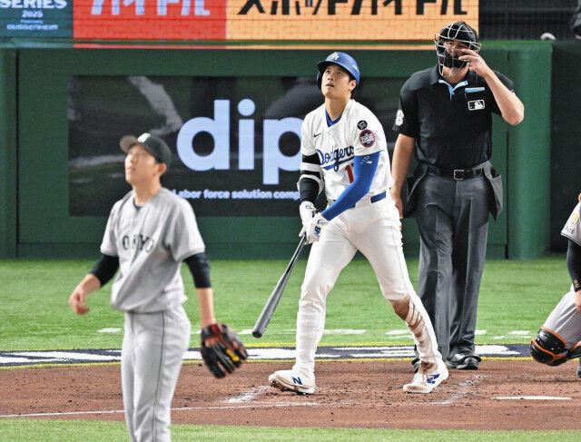 ドジャース・大谷翔平選手が「1番・指名打者」で先発出場。2点リードの3回無死二塁で巨人・戸郷の初球、スライダーを右翼席へ運んだ。打球速度は168・9キロだった。
