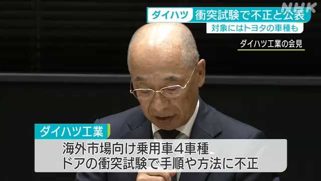 トヨタの豊田章男会長は説明会を開き「本当に申し訳ない。トヨタを含めた問題だ」と謝罪。トヨタ首脳に先立ち東京都内で記者会見したダイハツの奥平総一郎社長は「信頼を裏切り、多大な迷惑をおかけしている。1回で試験を通したいというプレッシャーが大きかったのではないか」と述べた。